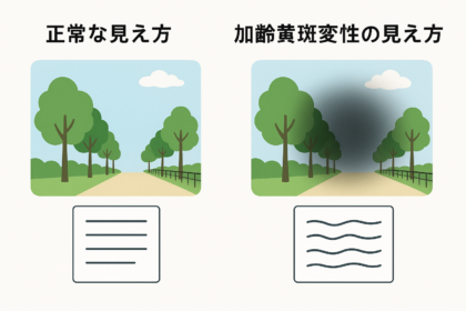 もう一つの大きな症状は視力低下です。数日から1週間ほどで急に視力が落ちたり、色の見え方がにぶくなる「色覚異常」が現れることがあります。特に赤色が黒っぽく見えるようになるのが典型的です。
