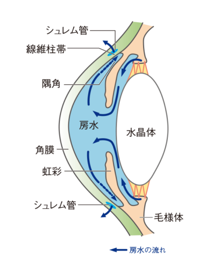 眼圧は、眼の中を満たす「房水」という液体のバランスによって決まります。